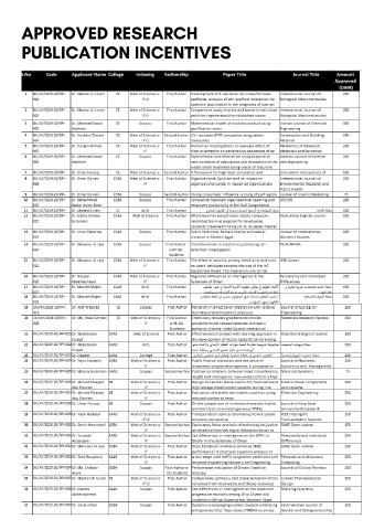 APPROVED RESEARCH PUBLICATION INCENTIVES